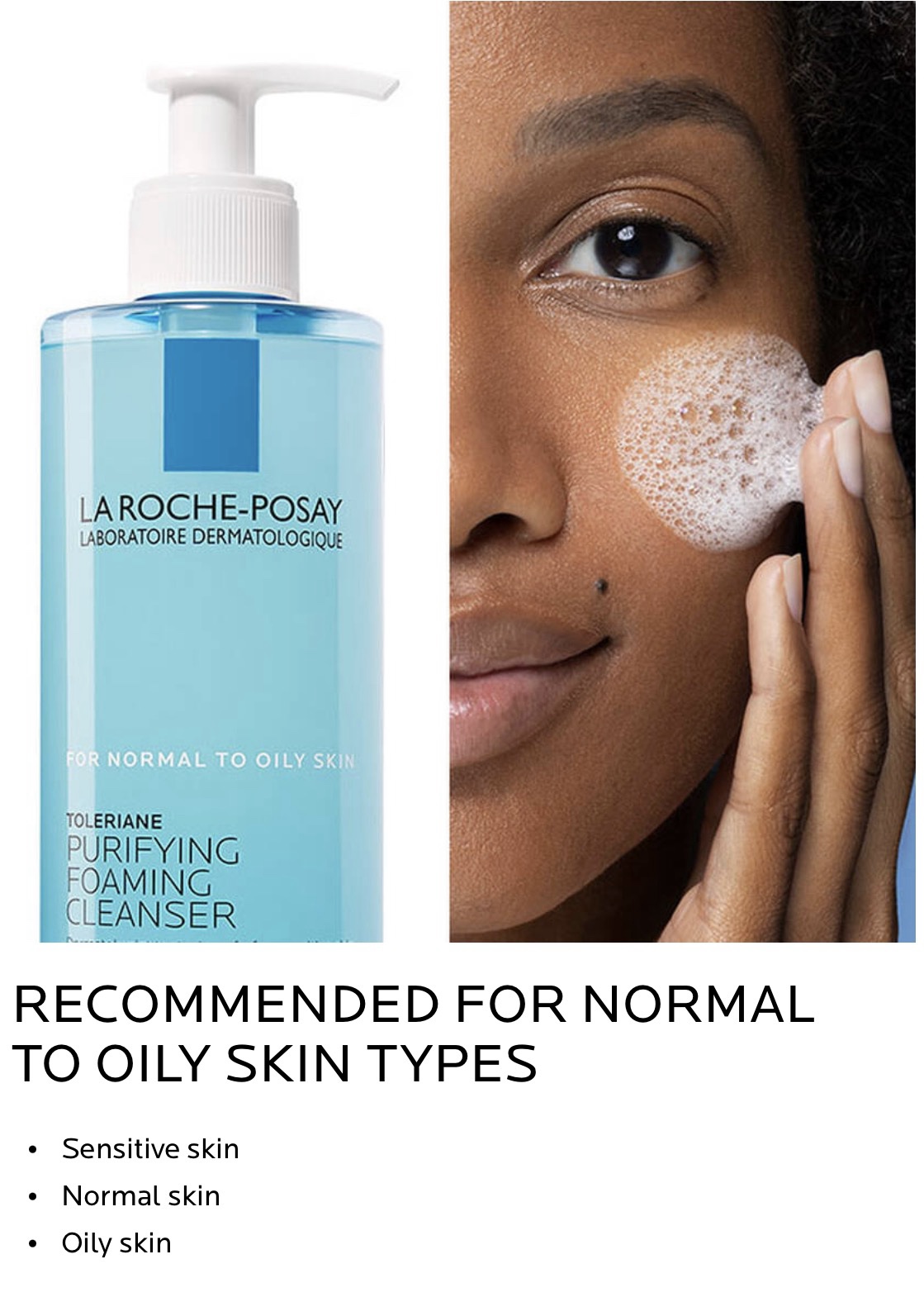 La Roche-Posay’sToleriane Purifying Foaming Facial Cleanser is a daily face wash for normal to oily, sensitive skin. Formulated with La Roche-Posay prebiotic thermal spring water, niacinamide, and ceramide-3, this face wash gently cleanses skin of dirt, makeup, and impurities while maintaining the skin’s natural moisture barrier and pH.