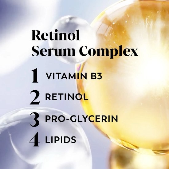 - Retinol & Vitamin B3 Complex: This blend boosts skin cell turnover, helps with skin regeneration, and improves skin elasticity.